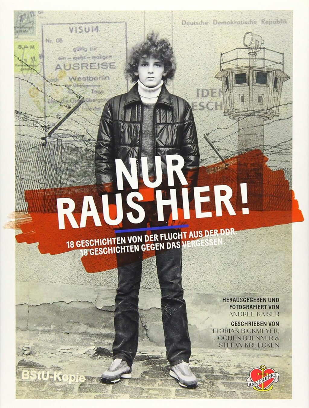 18 Geschichten von der Flucht aus der DDR erzählt von Menschen, die den Mut hatten, alles hinter sich zu lassen. Die Geschichten reichen von riskanten Schwimmversuchen über waghalsige Ballonfahrten bis hin zu Fluchten, die tragisch endeten. Pulitzer-Preisträger Andree Kaiser (nach einer Flucht selbst im Stasi-Knast gelandet) dokumentiert das Unsagbare mit eindringlichen Bildern, während die Texte von Jochen Brenner, Florian Bickmeyer und Stefan Krücken die Stimmen dieser Menschen hörbar machen.